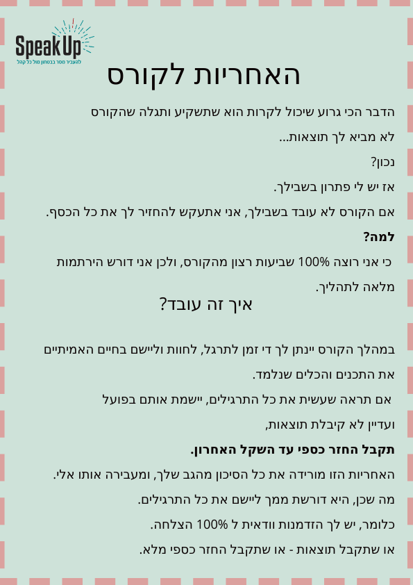 את הקהל. בסיום הקורס יהיו לך את כל הכלים